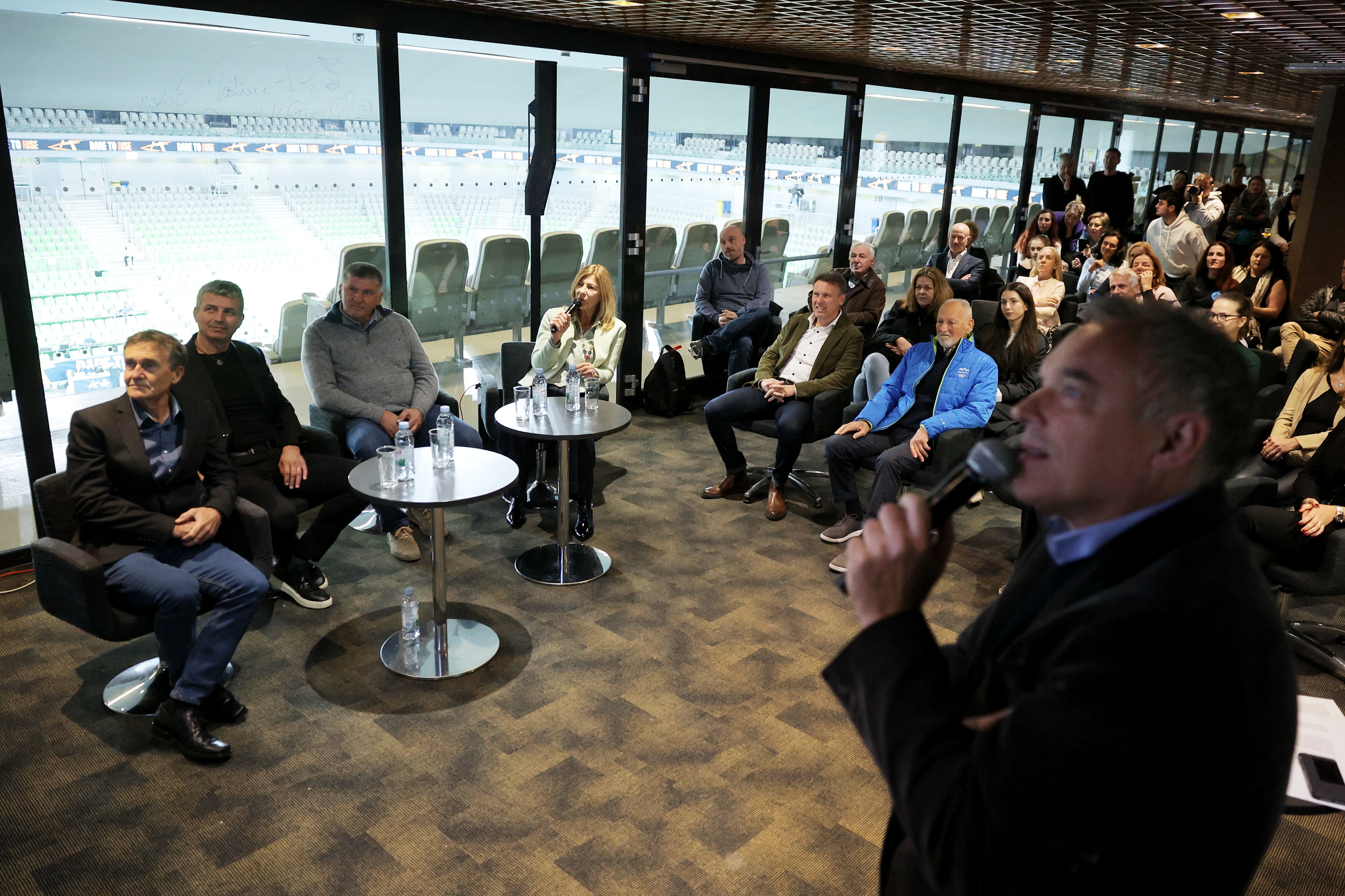 Društvo športnih novinarjev je sprejem novih članov v Hram slovenskih športnih junakov organiziral z veliko in srčno pomočjo rokometnega kluba Krim Mercator. Najlepša hvala za prijetno sodelovanje in srečno ekipi v prihodnosti.